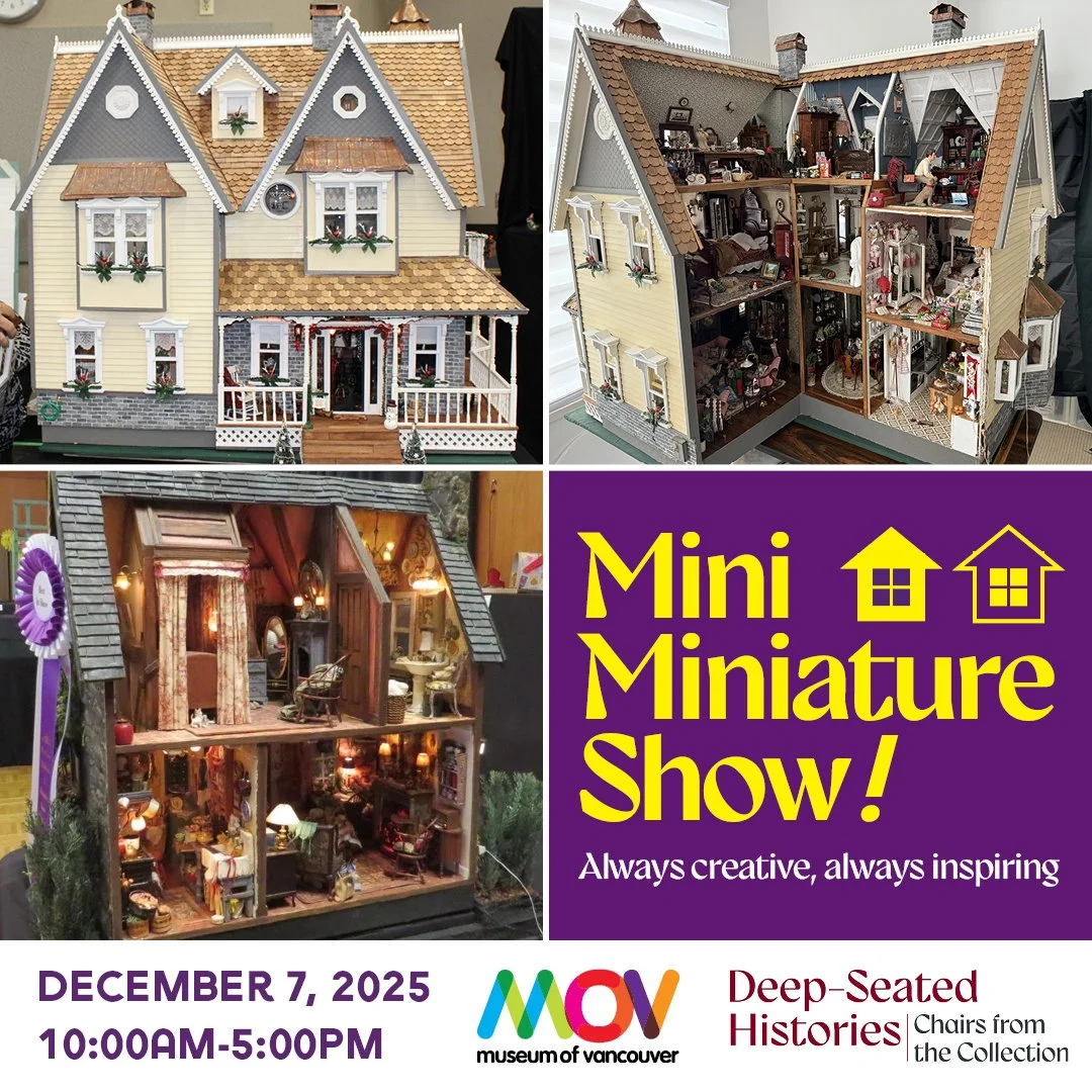 Brought you by the Vancouver Dollhouse Miniature Show, this Mini Miniature Show will showcase previous Miniature Show winning exhibits as well as miniatures from other shows! In addition to the dollhouses on display, vendors will be selling miniatures of all sorts!