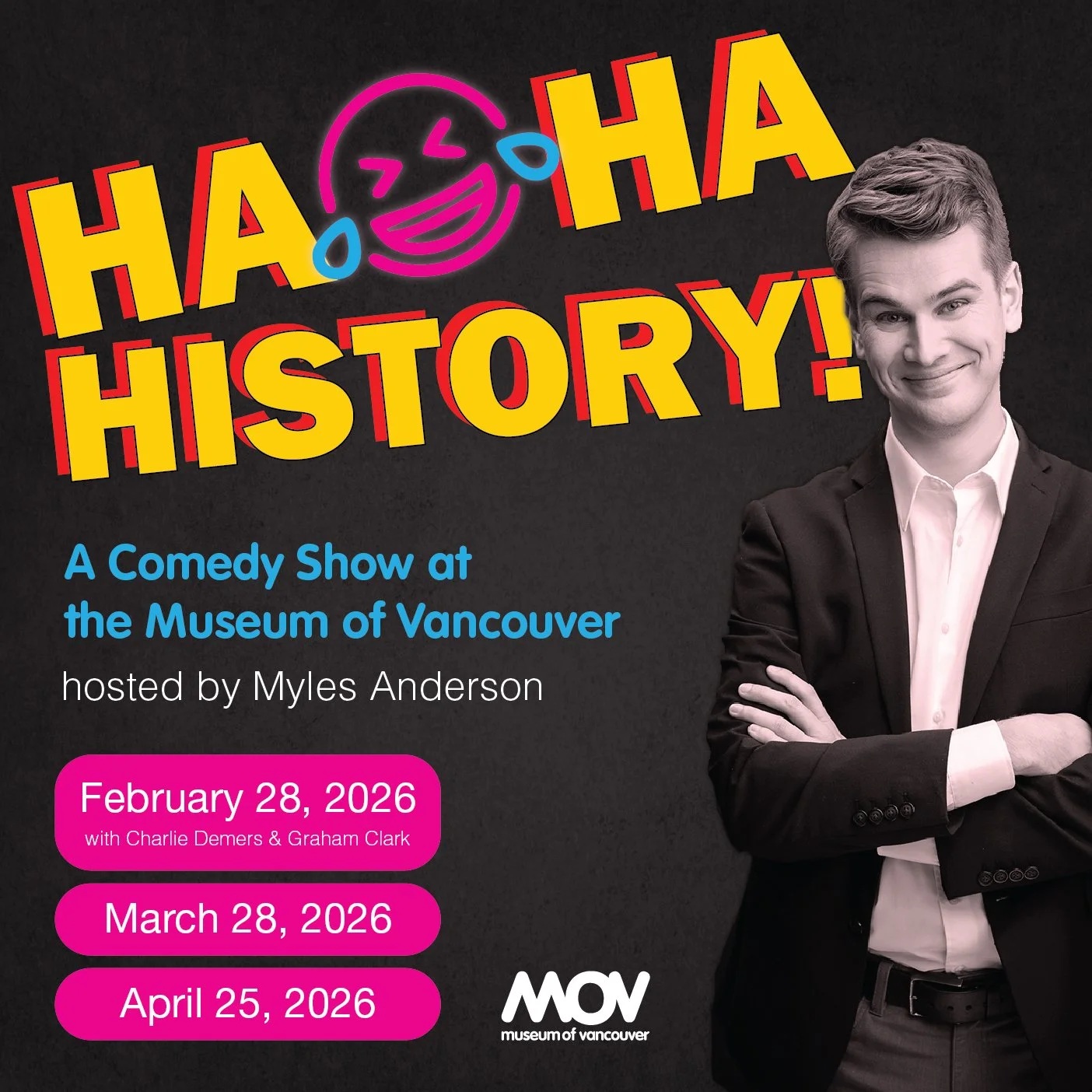 Kick off your evening with a night of comedy at the Museum of Vancouver! Hosted by Myles Anderson, a rotating lineup of comedians will riff, debate and respond to prompts drawn from the MOV’s collection. Items from the collection will be projected on screen, sparking unexpected stories, humour and insight into Vancouver’s history. Come curious, come early, and start your night with something a little unexpected at the Museum.