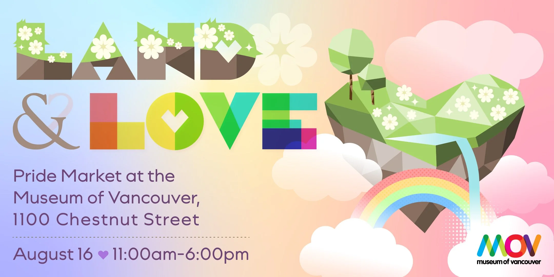 Get ready for our Land & Love Pride Market on August 16! The Market will take place in the Museum of Vancouver’s upper lobby for a day celebrating Two-Spirit, Indigiqueer and/or LGBTQA+ artists. Discover amazing art, crafts and goodies from talented local makers who are here to share their creations with you.