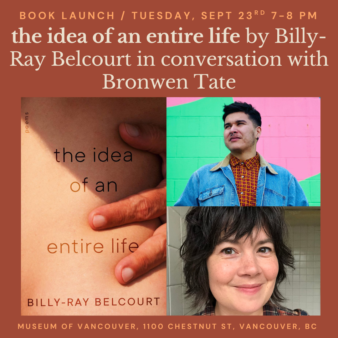 Join Massy Books, McClelland & Stewart, the Museum of Vancouver, Bronwen Tate, and Billy-Ray Belcourt, for the launch of an idea of an entire life on September 23 at 7pm!
