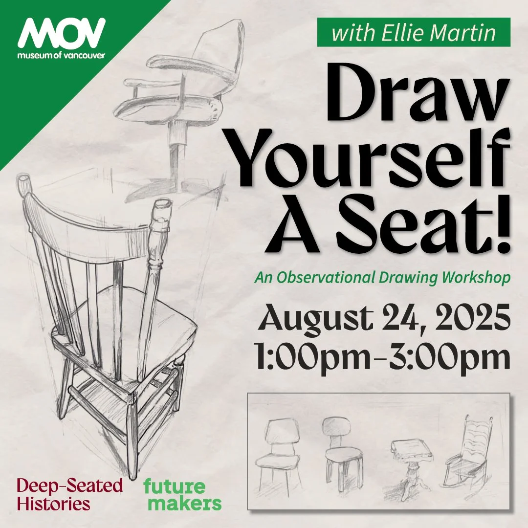 *Please call 604-736-4431 during MOV business hours to obtain a discount code if you are an MOV Member or Indigenous. A service fee and GST is also applied to ticket sales. Please note that this price point is based on covering the artist’s fee and materials.