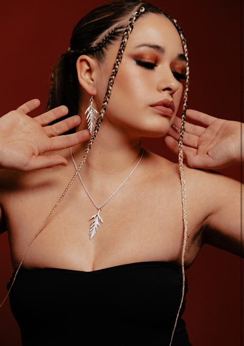 I am a Gitx̱san artist and jewelry designer from the Laxskiik (Eagle) clan of Kitwanga, BC, now living in Laxyuubm Ts’msyen (Terrace, BC). I’m the founder of Jada Creations, where I blend traditional Gitx̱san formline with modern design to create jewelry that tells stories of strength, identity, and culture. As a single mother and self-taught entrepreneur, my work is deeply personal — a reflection of resilience, pride, and the beauty of Indigenous artistry in today’s world.